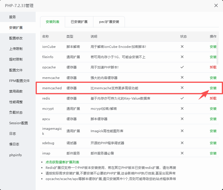 PHP也需要同步安装memcached扩展;