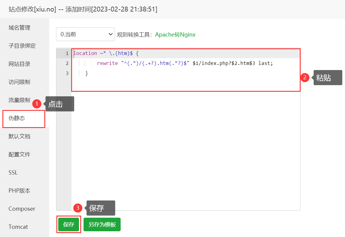 1. 在网站根目录创建文件 .htaccess,内容如下: